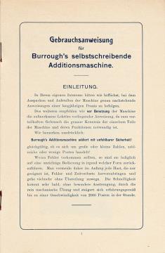 Bedienungsanleitung für Rechenmaschine Burrough's