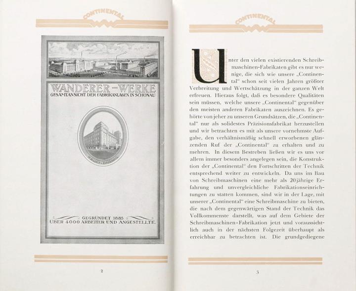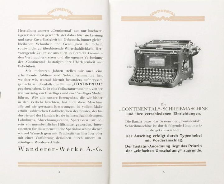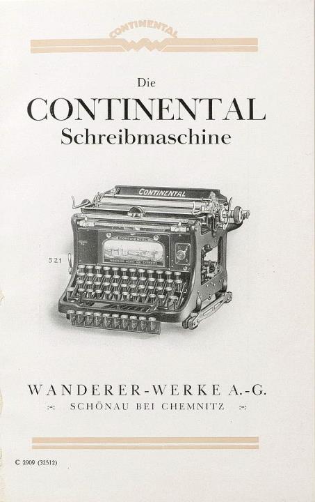 Prospekt für Schreibmaschine Continental, mit Tastatur- und Schriftartenübersicht Nr. C 2909 (32512)