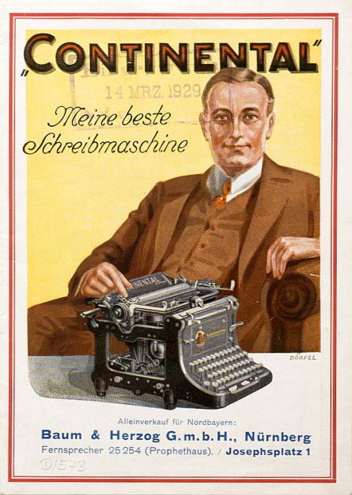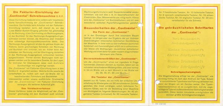 Faltprospekt für Schreibmaschine Continental mit Kolonnensteller und Continental mit vierfachem Dezimal-Tabulator Nr. C 3067 (1227100) Grafik: Dörfel
