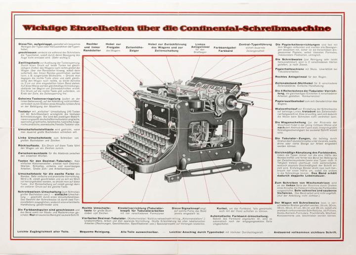 Faltprospekt für Schreibmaschine Continental, mit Schriftartenübersicht Nr. C 3068 (1127100) Grafik: Dörfel