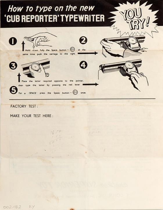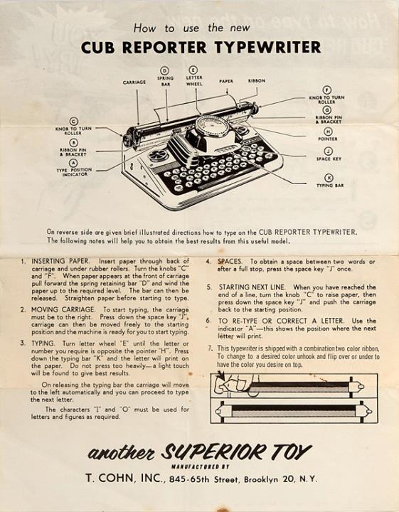 Bedienungsanleitung in englischer Sprache für Kinderschreibmaschine Cub Reporter
