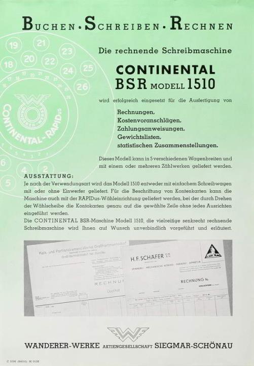 Prospekt für Schreibmaschine Continental BSR eine rechnende Schreibmaschine Nr. C3296 (84010)
