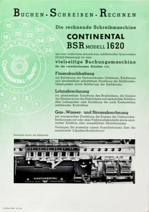 Prospekt für Schreibmaschine Continental BSR die rechnende Schreibmaschine mit zwei Querwerken Nr. C3300 (8405)