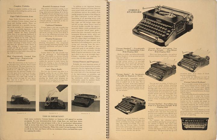 Prospekt für Schreibmaschine Corona Standard Nr. AC321 1987 4500 6-37