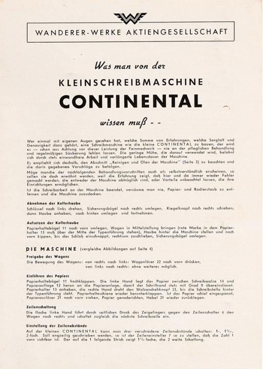 Was man von der Kleinschreibmaschine Continental wissen muß - -