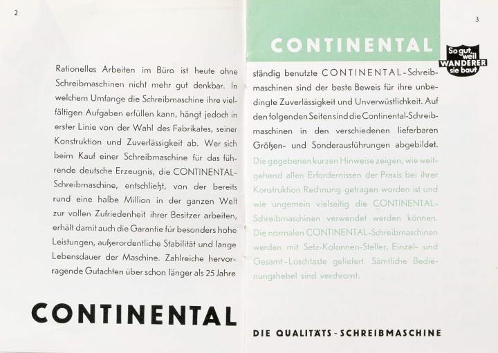 Prospekt für Schreibmaschine Continental Nr. C 3587 Grafik: Amann