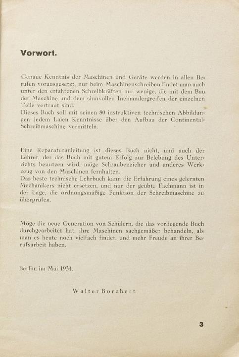 Bedienungsanleitung für Schreibmaschine Continental von Walter Borchert, Lehrer des Maschinenschreibens in Berlin