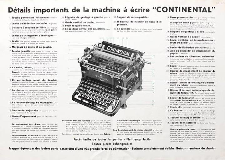 Faltprospekt in französischer Sprache für Schreibmaschine Continental