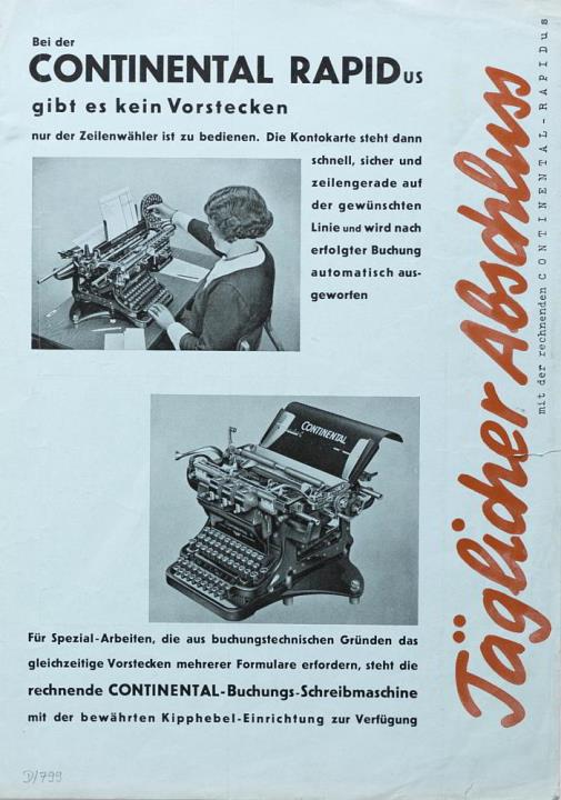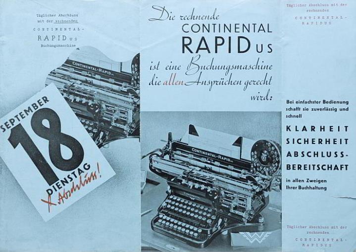 Faltprospekt für Schreibmaschine Continental Rapidus Bei der Continental Rapidus gibt es kein Vorstecken Nr. C 3639 (93450)