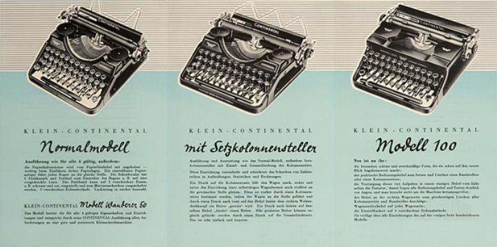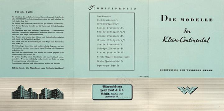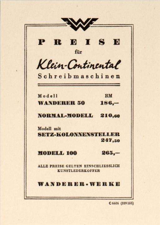 Faltprospekt und Preisliste für tragbare Schreibmaschinen Continental Nr. C 6652 (339300), C 6686 (339155)