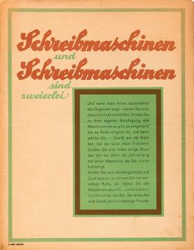 Faltprospekt für Schreibmaschine Continental, mit Schriftartenübersicht Grafik: Dörfel