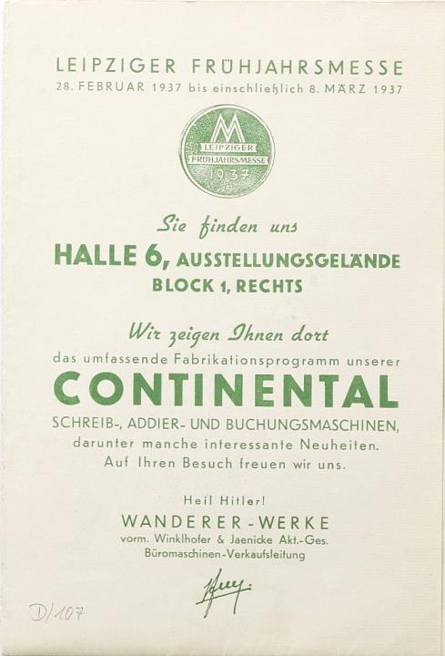 Faltprospekt zur Leipziger Frühjahrsmesse (28.02.-08.03.1937) für Schreib-, Addier- und Buchungsmaschinen Continental Nr. C 3787 (53650)