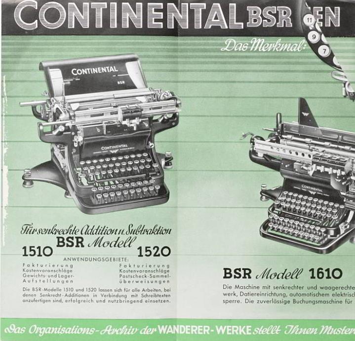 Faltprospekt für Schreib- und Buchungsmaschinen Continental BSR Nr. C 3988 (23875)