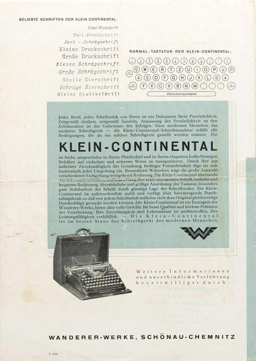 Faltprospekt für Schreibmaschine Continental Nr. C 6154