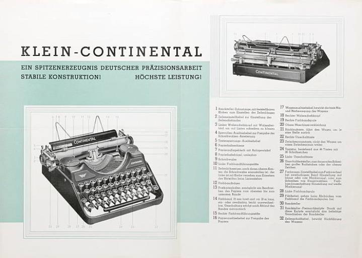 Faltprospekt für Schreibmaschine Continental Nr. C 6274 (72550)