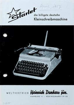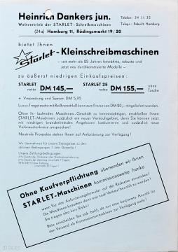Prospekt für Schreibmaschine Starlet Datum handschriftlich vermerkt