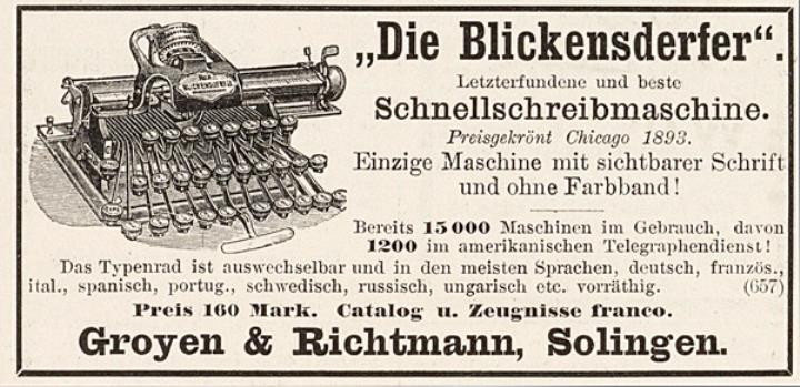 Die Blickensderfer. Letzterfundene und beste Schnellschreibmaschine