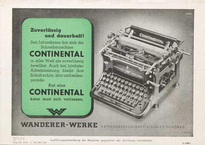 Prospekt für Schreibmaschine Continental Nr. C 21003 Grafik: Lanz