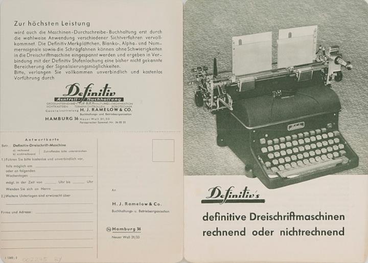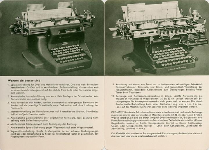 Faltprospekt für Schreib- und Buchungsmaschine Definitiv Nr. J 5502/2