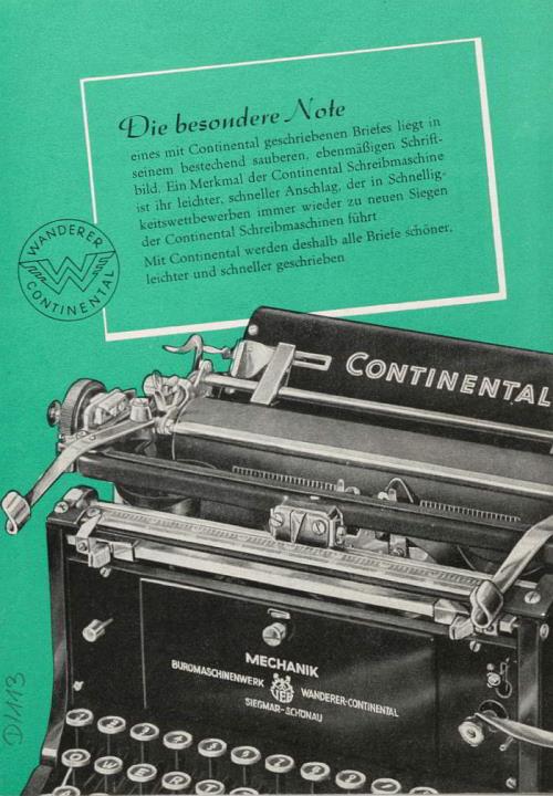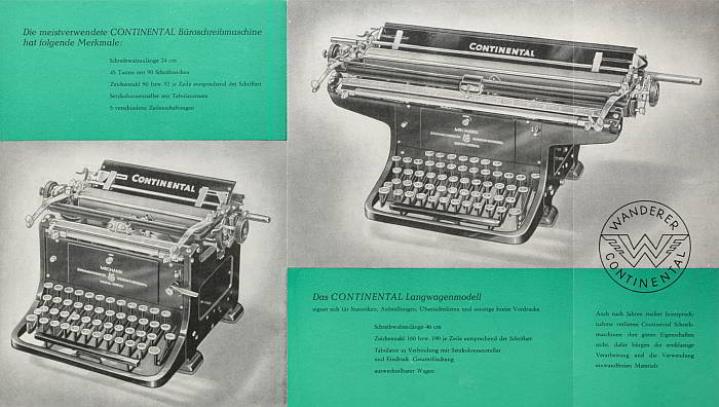 Faltprospekt für Schreibmaschine Continental Nr. 3483 III/6/31