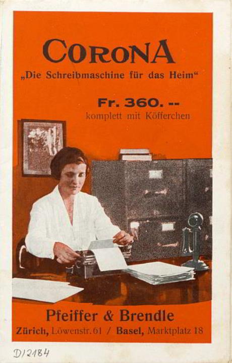 Next to literature on the history of technology, of the typewriter and the office, the Archive holds patent letters, textbooks and instruction manuals as well as historical postcards, letters, photographs and various kinds of advertising (leaflets and brochures, advertising stamps, newspaper ads, posters and signs, promotional gifts).