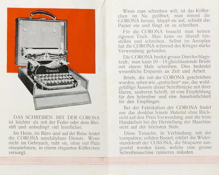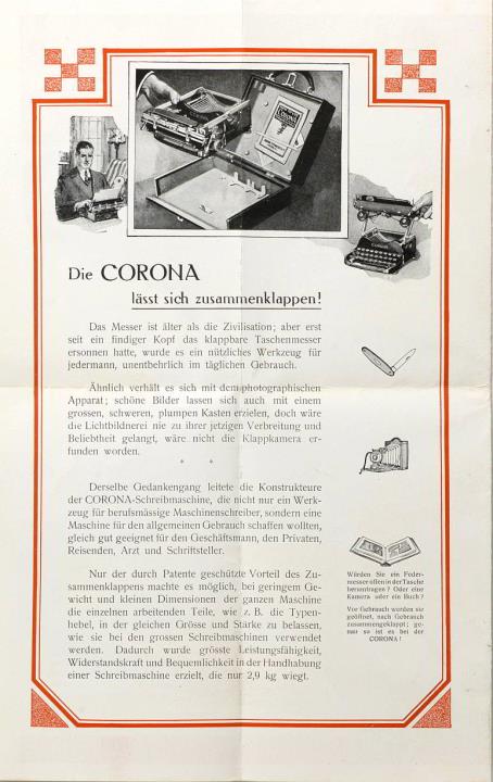 Faltprospekt für Schreibmaschine Corona Nr. 242211,34