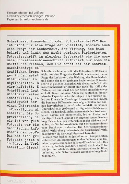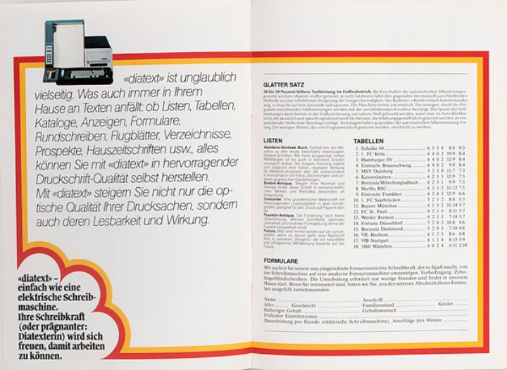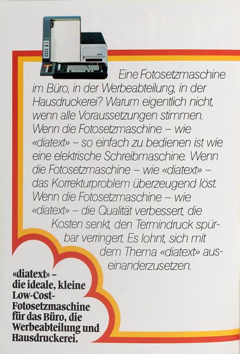 Prospekt für Textmaschine/Fotosetzmaschine diatext