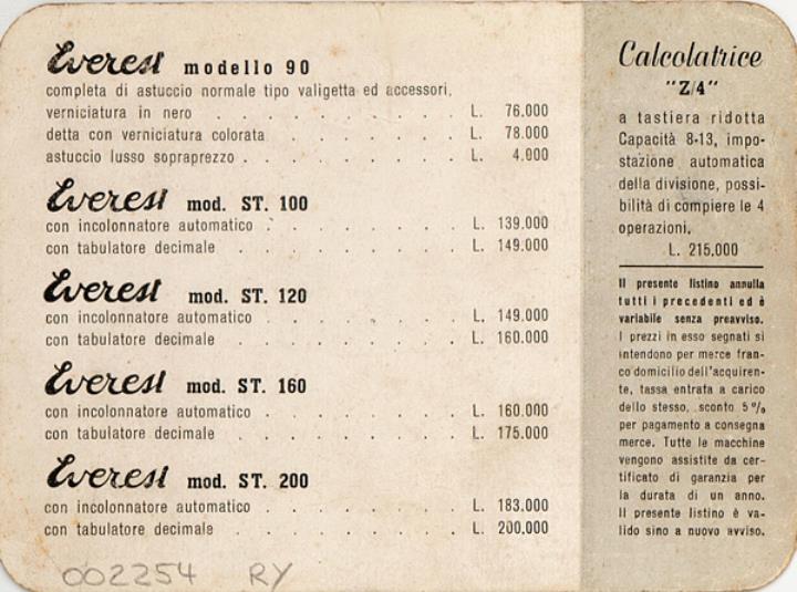 Macchine per scrivere e da calcolo Everest Listino prezzi