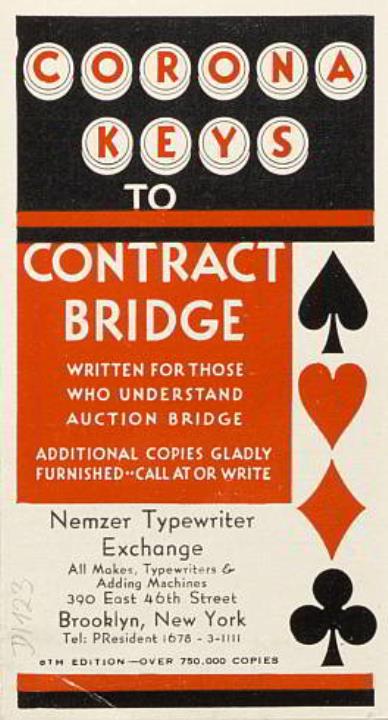 Faltprospekt mit Punkte- und Wettangaben für Bridge und Werbehinweis auf Schreibmaschinen Smith-Corona Nr. AC-103