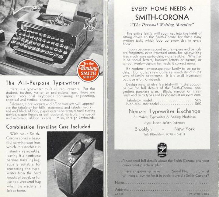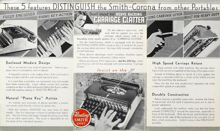 Faltprospekt für Schreibmaschine Corona Sterling-Model with floating Smith shift Nr. AC-131