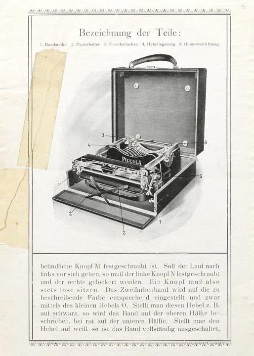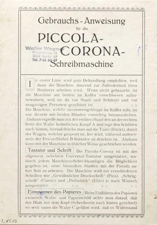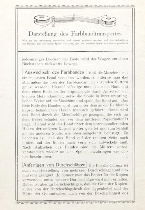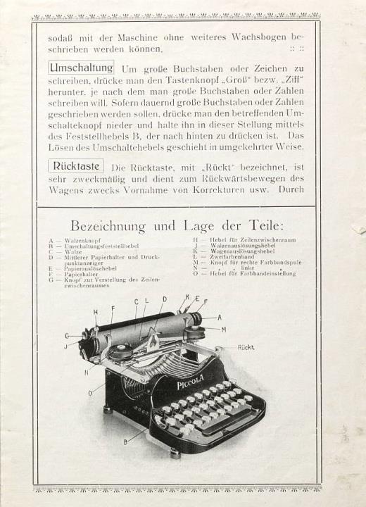 Gebrauchsanweisung für die Piccola Corona-Schreibmaschine