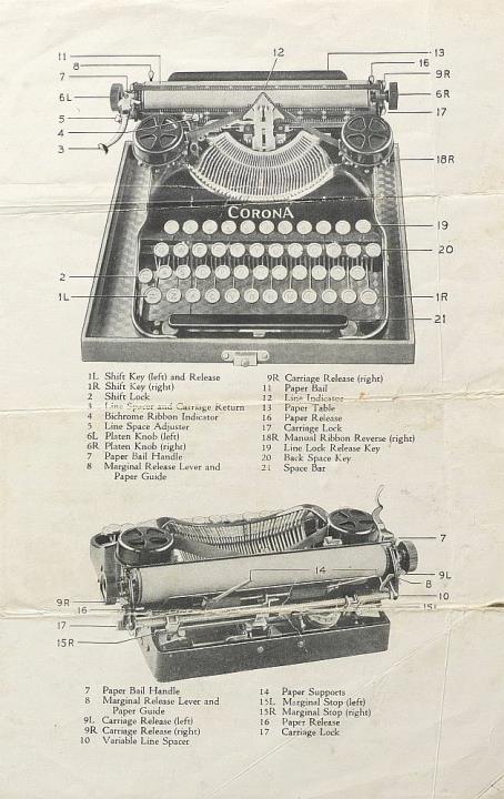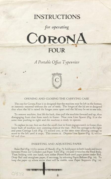 Bedienungsanleitung für Schreibmaschine Corona 4 Nr. X48 3219 15M 4 24 mit Garantiekarte, datiert 1924