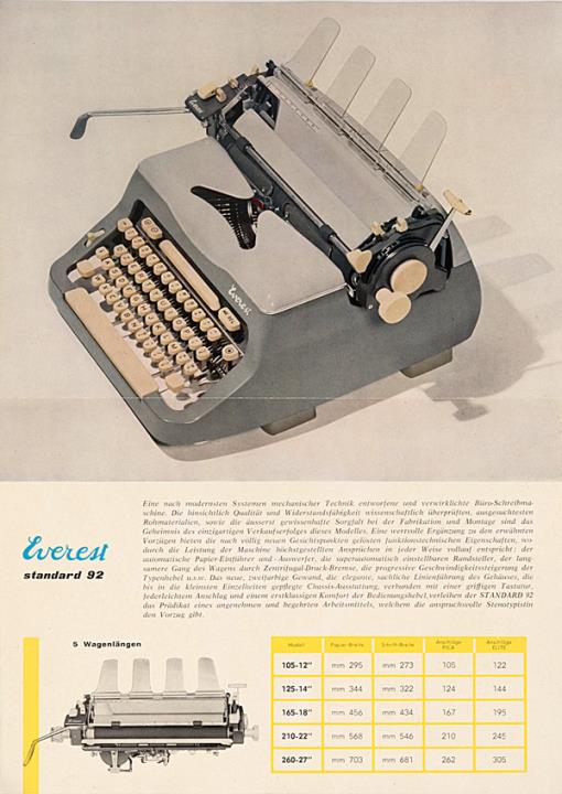 Faltprospekt für Schreibmaschine Everest Standard 92 Nr. E. 210