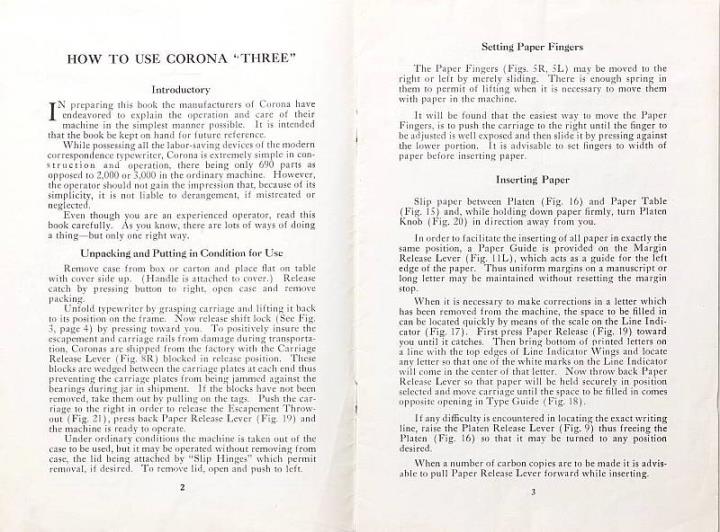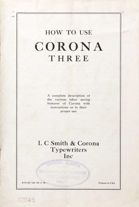 Bedienungsanleitung für Schreibmaschine Corona 3 Nr. STS-473 7261 3M 11 30