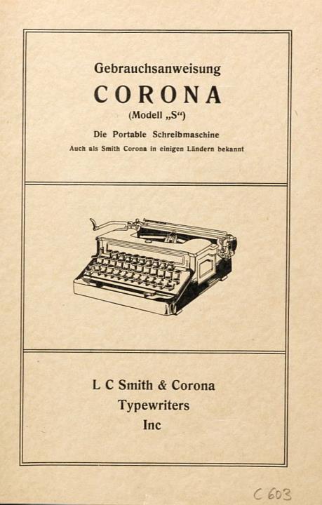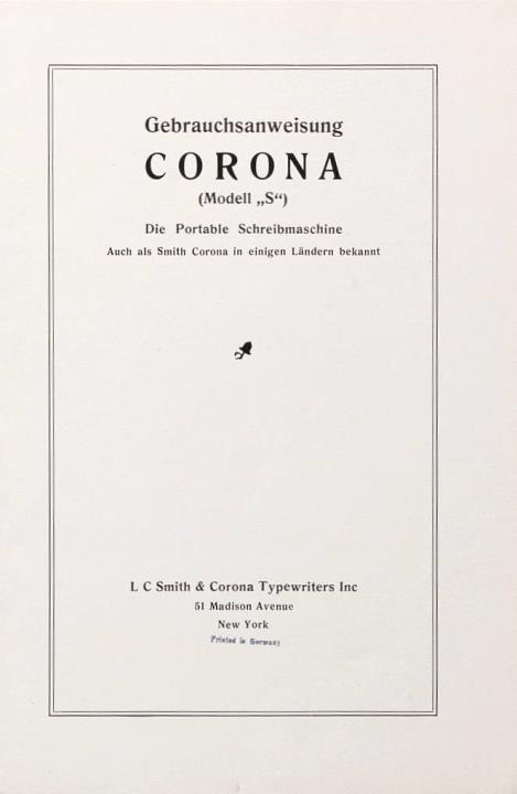 Bedienungsanleitung für Schreibmaschine Corona Modell S Die Portable Schreibmaschine. Auch als Smith Corona in einigen Ländern bekannt Nr. PS-490 4M/3/32/ German