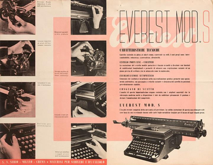 Faltprospekt für Schreibmaschine Everest Mod. S