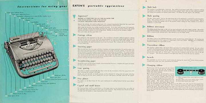 Bedienungsanleitung in englischer Sprache für Schreibmaschine Eatons