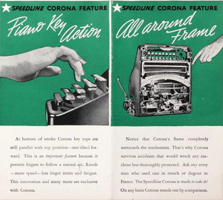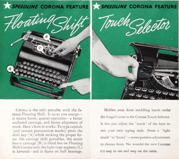 Faltprospekt für Schreibmaschine Corona Zephyr, Standard, Sterling und Silent Nr.500 M-8-38