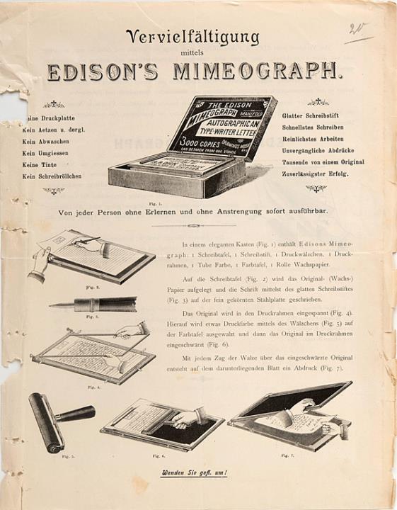 Vervielfältigung mittels Edison's Mimeograph