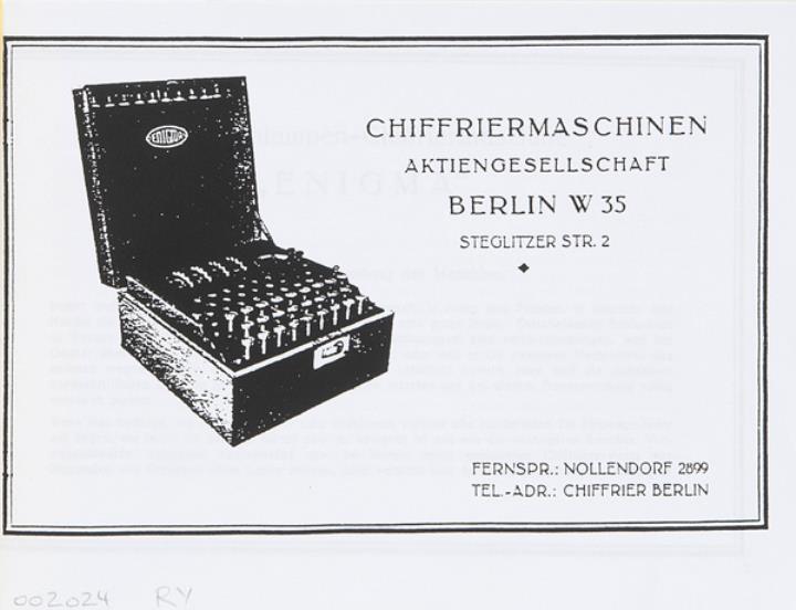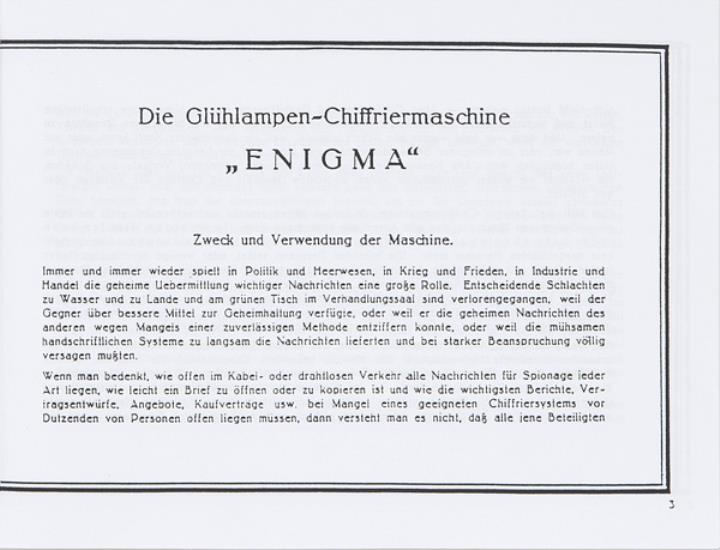 Prospekt für Schlüsselmaschine/Chiffriermaschine Enigma Nachdruck