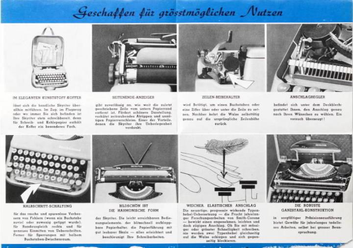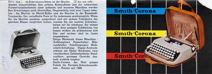 Faltprospekt für Schreibmaschine Smith-Corona Skyriter Wiegt weniger als 4 kg! Nr. Sky A