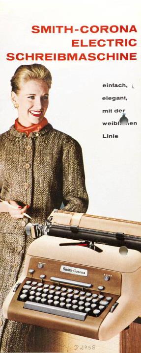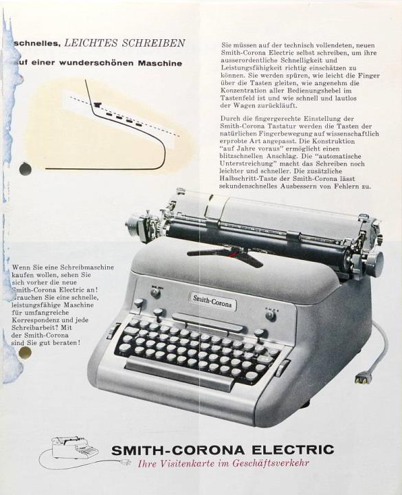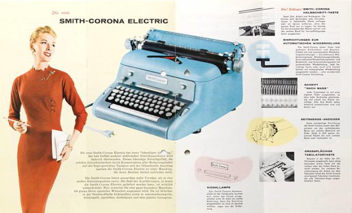 Faltprospekt für Schreibmaschine Smith-Corona Electric einfach, elegant, mit der weiblichen Linie Nr. AE 51 G