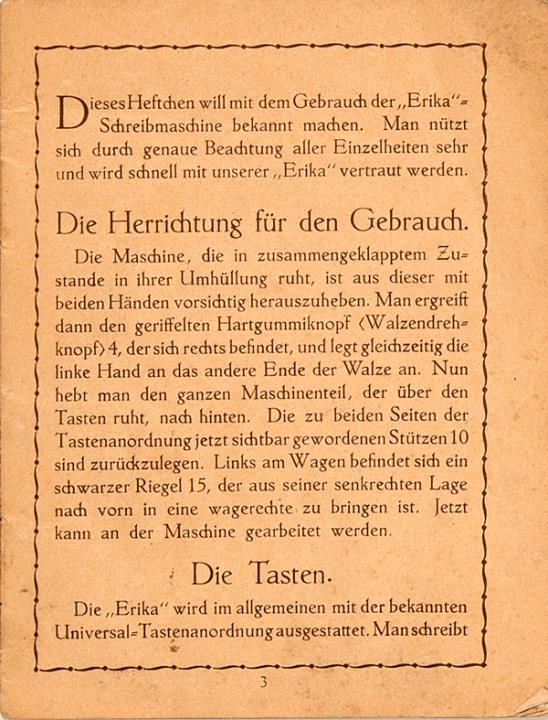 Anleitung für den Gebrauch der Erika-Schreibmaschine