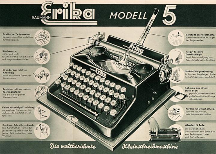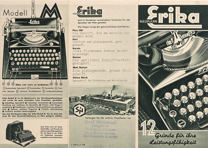 Faltprospekt für Schreibmaschine Erika S. 7187 te pr TGE