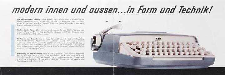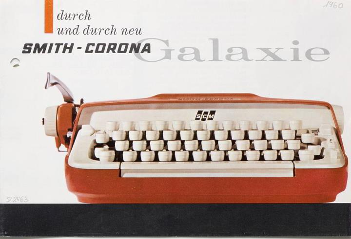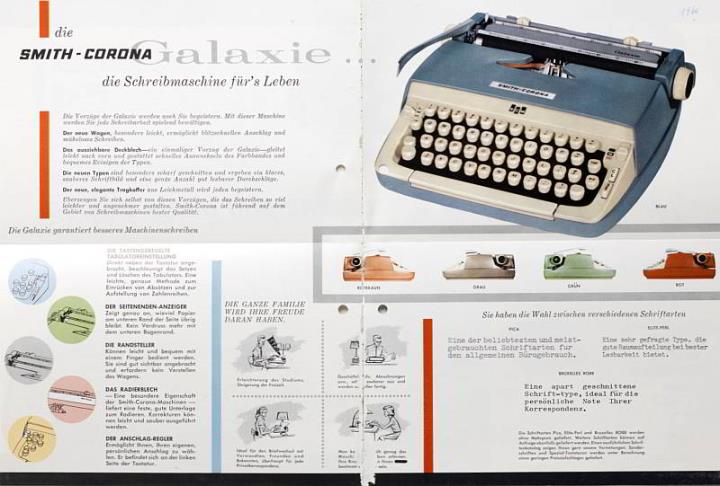 Faltprospekt für Schreibmaschine Smith-Corona Galaxie Datum handschriftlich vermerkt