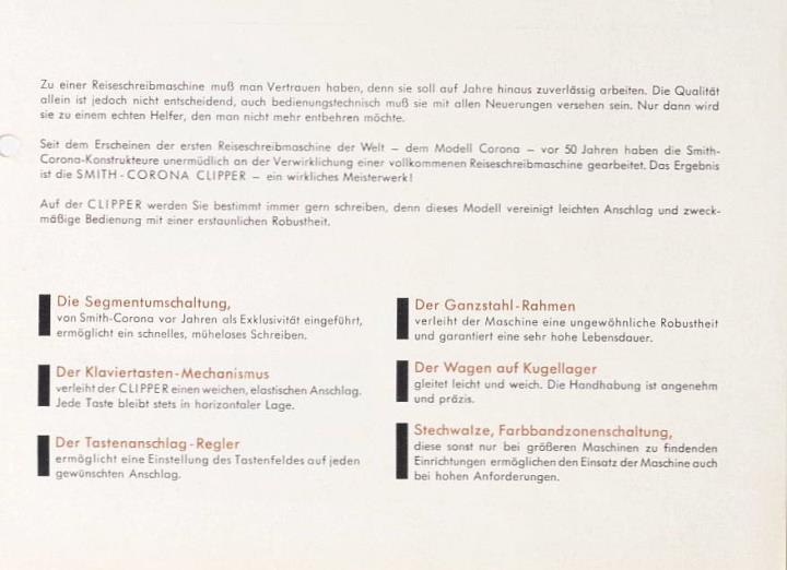 Faltprospekt für Schreibmaschine Smith-Corona Clipper