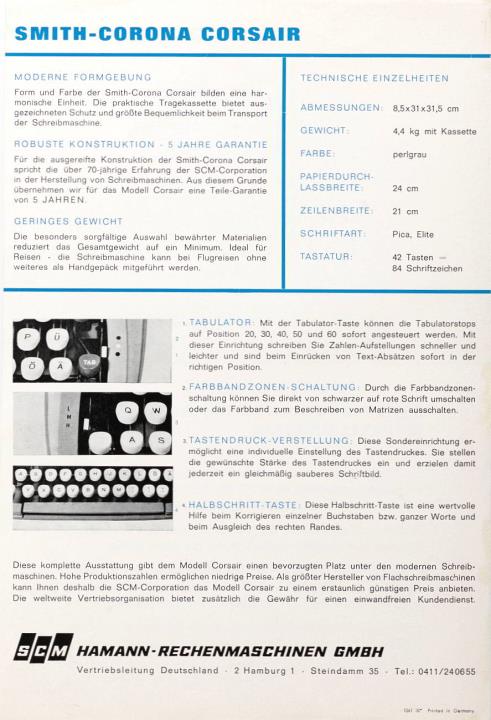 Prospekt für Schreibmaschine Smith-Corona Corsair Nr. 1061 30 Datum handschriftlich vermerkt