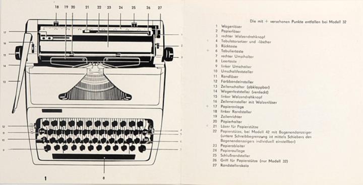 Bedienungsanleitung für Schreibmaschine Erika 32 und 42 Nr. Jt 564 73 III 7 4 Beilage: Garantieschein Nr. 4880907
