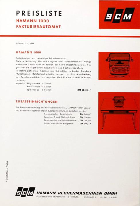 Schreibmaschine, Typenhebel, Preise, Preisliste