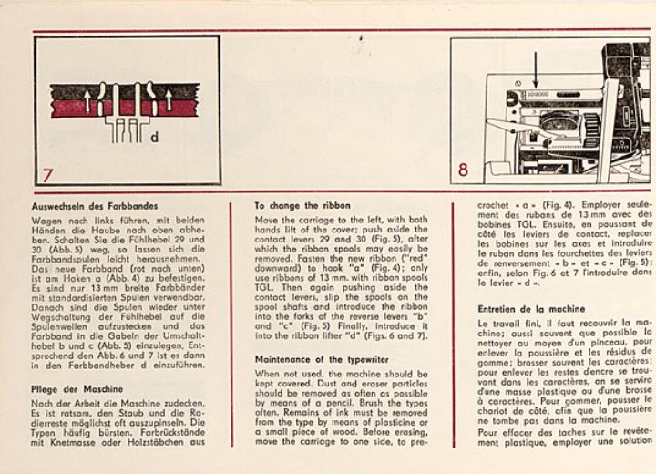 Bedienungsanleitung dreisprachig für Schreibmaschine Erika 50 und 60 Nr. III-9-16 Jt 574/74 40
